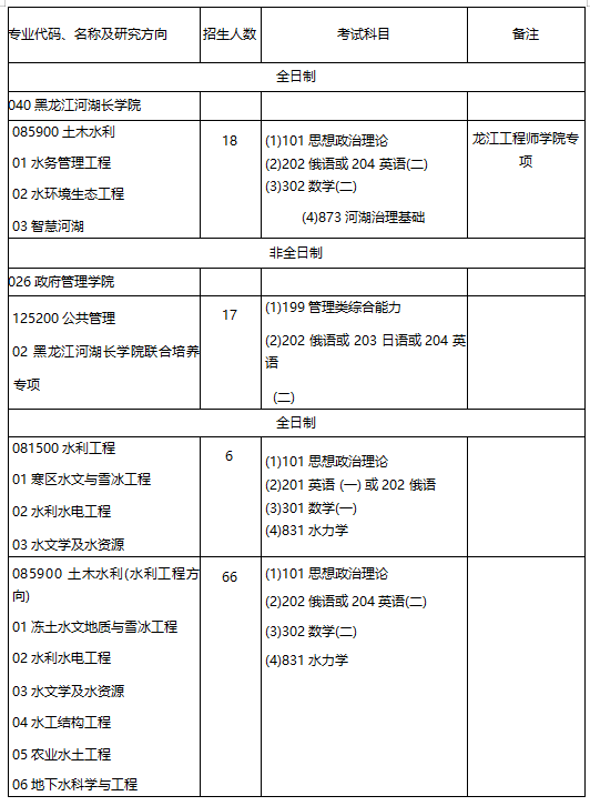 一、黑龙江河湖长学院(ylzzcom永利总站)2025年硕士研究生招生专业目录