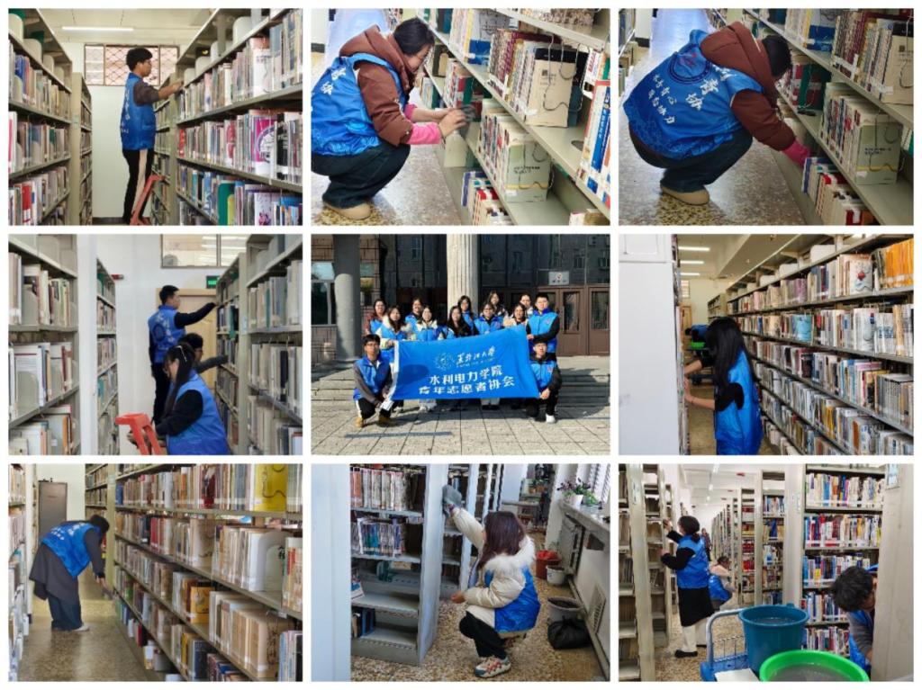 “青年志愿•美丽校园”志愿服务活动。校园服务持续升级,借阅室焕然一新。志愿者们走进图书馆,他们手持抹布,认真擦拭书架上的每一层灰尘,并细心整理各类书籍,确保它们排列得井井有条。经过一番辛勤劳作,借阅室面貌焕然一新,为师生们营造了一个更加舒适、整洁的学习空间,进一步提升了校园服务的品质。