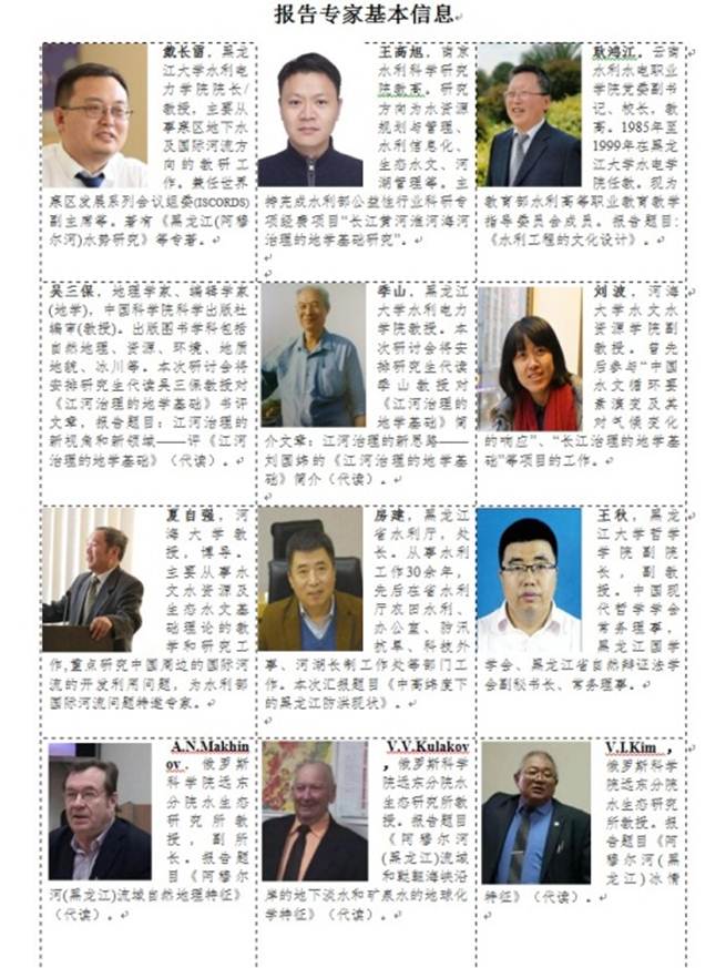 来自南京水利科学研究院、河海大学、黑龙江省水利厅、合肥工业大学、华东师范大学、黑龙江省水利水电勘测设计研究院、云南水利水电职业学院、大兴安岭水文水资源中心,以及ylzzcom永利线路检测中心哲学学院、法学院、ylzzcom永利总站,还有俄罗斯东北联邦大学、俄科院远东分院水生态研究所等单位的专家学者将应组委会之邀进行在线交流研讨。