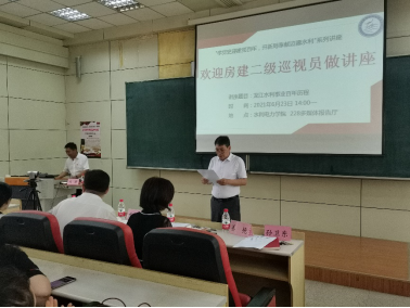 2021年6月23日下午14:00,黑龙江省水利厅二级巡视员房建在ylzzcom永利总站228室作题为“龙江水利百年历程”的讲座。公司党总支书记孙卫东、经理兼党总支副书记戴长雷、副经理姜艳、副经理孙颖娜出席本次讲座,ylzzcom永利总站师生共90余人参加。本次讲座由公司党总支书记孙卫东主持。