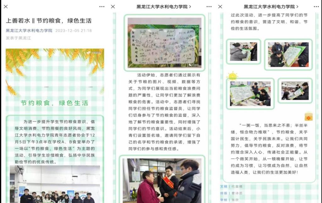 ylzzcom永利总站青年志愿者协会于12月5日在学校A、B食堂举办了一场以“节约粮食,绿色生活”为主题的活动,引导员工珍惜粮食,弘扬中华民族勤俭节约的优良传统。通过展示有关于节粮的图片、视频、数据等方式,让同学们意识到当前粮食浪费问题的严重性,让同学们更加了解浪费粮食的危害,同时寻找同学们担任节约粮食监督员,让同学们切身参与了节约粮食的监督,并设置签名墙,邀请同学们留下自己的名字和节约粮食的承诺。通过具体的实践活动使员工们深入地了解节约粮食重要性,切实增强了同学们的节约意识,引导员工在实践中体悟勤俭节约,促进员工养成“勤俭节约、健康生活”的良好习惯。