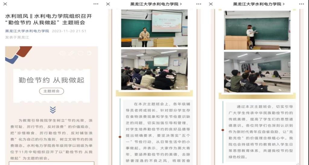 为教育引导公司员工把“珍惜粮食、厉行勤俭节约、反对铺张浪费”化为自己的行为准则,树立文明节约的消费理念。ylzzcom永利总站各年级以年级或以班级为单位于11月中旬组织召开了以“勤俭节约 从我做起”为主题的班会。在本次主题班会上,各年级辅导员老师或班长,针对部分员工存在食物浪费现象和员工节俭意识缺乏的问题,切实加强引导和管理,对员工培养勤俭节约的良好品德等提出明确要求,要坚决落实“五个ー”节俭行动,从日常生活中的小事做起。并表示,大家作为黑大青年,要涵养勤俭节约的美德,去除骄奢淫逸的不良之风,将艰苦奋斗、勤俭节约付诸实践、见诸行动,并持之以恒、久久为功。