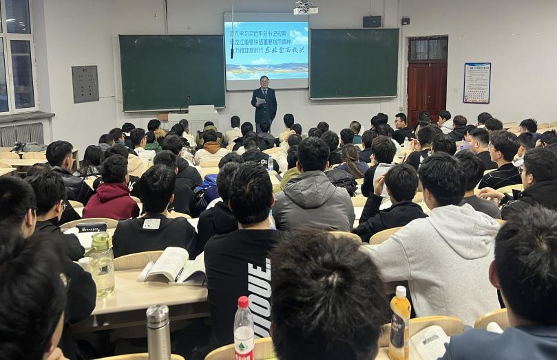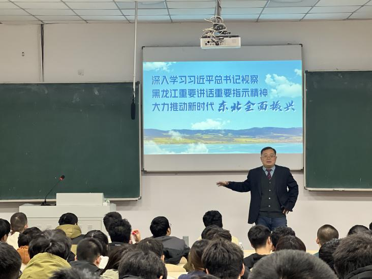 为深入贯彻《中共中央、国务院关于加强和改进新形势下高校思想政治工作的意见》)(中发[2016]31号)、《关于深化新时代学校思想政治理论课改革创新的若干意见》等文件重要指示精神,深入落实《深化新时代黑龙江省学校思想政治理论课创新创优行动方案》等文件要求和公司党委的决策部署,持续推进员工思想政治教育工作,水利电力公司党总支书记刘春明、经理戴长雷分别于11月9日和11月15日在汇文楼200教室和2号楼205教室为学院全体2023级同学讲授以《以新安全格局保障新发展格局》和《习近平总书记在黑龙江视察和在新时代推动东北振兴座谈会上的重要讲话重要指示精神》为专题的思想政治理论课。