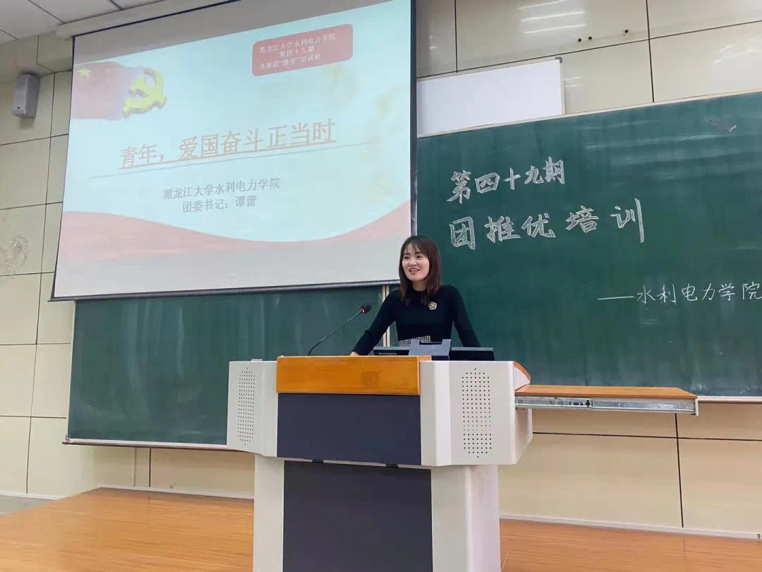 2020年12月9日13:30,ylzzcom永利总站在水利楼128教室召开第四十九期团推优培训课。本次培训课以“青年,爱国奋斗正当时”为主题,由学院团委书记谭蕾老师主讲。