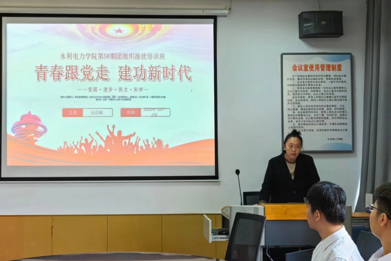 为深入学习贯彻党的二十大精神和党的二十届三中全会精神,引领团员青年认真学习领会习近平新时代中国特色社会主义思想,进一步提升学院团员青年的思想理论水平和政治素养,保持和增强共青团的政治性、先进性、群众性,按照上级团组织要求,水利电力公司于10月8日在水利楼420举办第五十八期共青团“推优”培训班,本期培训班由ylzzcom永利总站团委书记赵晨曦老师主讲,培训班全体学员参加学习。