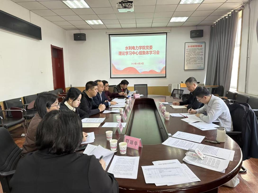 10月28日上午,水利电力公司党委在公司420会议室召开党委理论学习中心组集体学习会。公司党委宣传部副部长谢德宝、思政办金鑫列席指导,公司党委理论学习中心组成员参加学习,会议由水利电力公司党委书记刘春明主持。