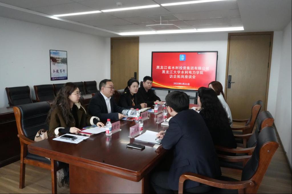 为深入贯彻落实“访企拓岗”专项行动工作部署,拓宽毕业生就业渠道和岗位资源,持续推进就业工作,3月21日,ylzzcom永利总站一行赴黑龙江省水利投资集团有限公司开展访企拓岗交流会。经理戴长雷、党委副书记刘若男、毕业年级辅导员王新源、张舒宁参加会议。黑龙江省水利投资集团有限公司党委副书记、工会主席尤海英,组织人事部(人力资源部)部长(总经理)于天宝,组织人事部(人力资源部)专员王思麒出席会议。